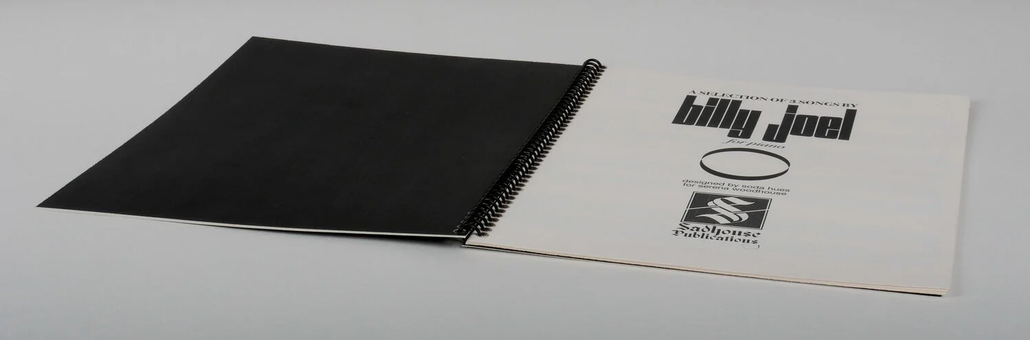 The cover consisted of a heavy linen paper while the interior was text-weight ivory. The booklet is spiral bound rather than staple so that the pages will lay flat; and opening and closing the booklet should cause minimal wear. The friend that it was intended for had said they wanted sheet music in order to practice the song Piano Man. It was my goal to ensure they had a booklet that would lay flat and handle more wear than the typical gloss staple bound sheet music booklet.