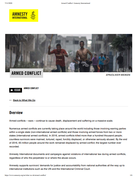 This project was part of a university assignment. For this assignment we were to redesign an under-designed fact sheet and online article for printed publication by a single organization. We were supposed to use the established style and branding guides by the organizations to complete our project. I looked at the selected organizations and I chose Amnesty International.