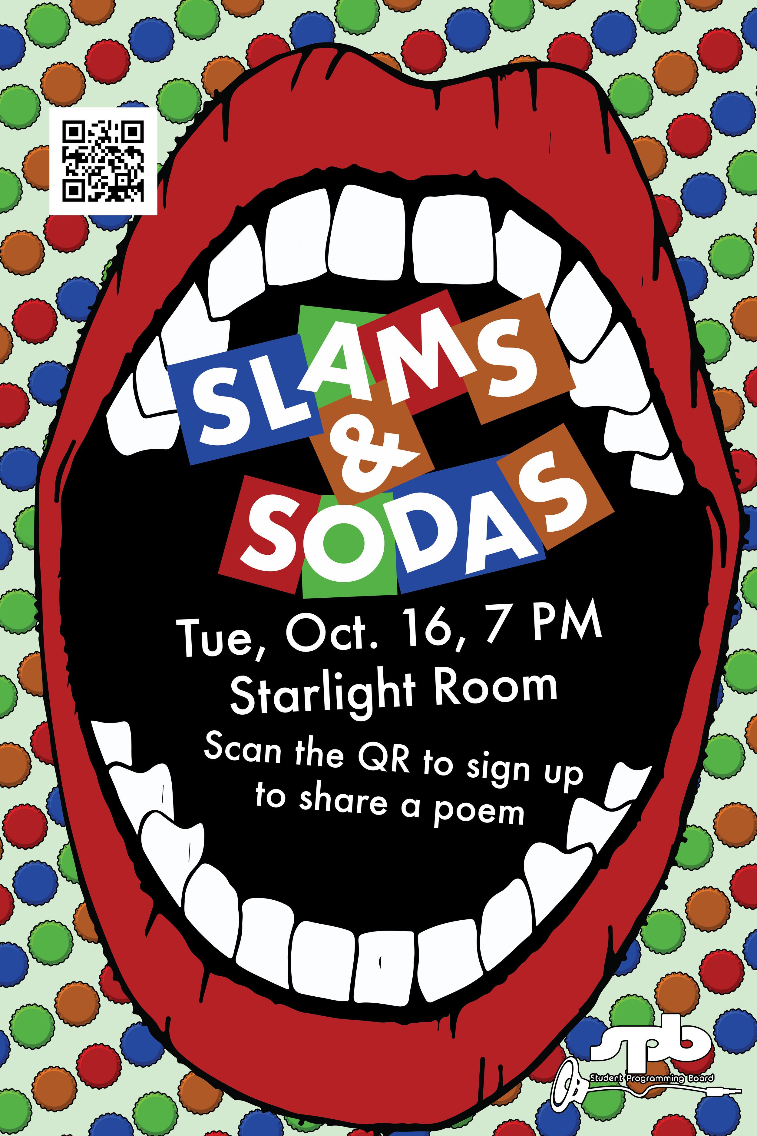 This project was made to promote an event with slam poetry and soda pop. Yes, the theme of the event was as tenuous as alliteration; I didn’t make the even though, just the poster. So I did my best to make it exciting, and chose to go for a bit of a pop.